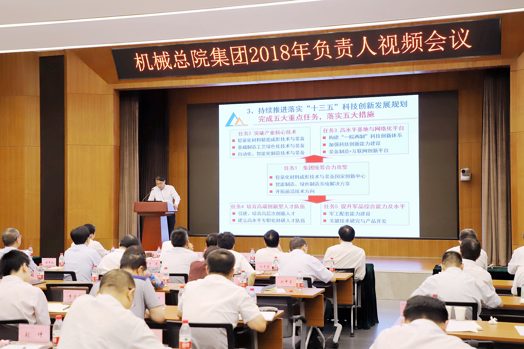 7月24日,機(jī)械總院集團(tuán)召開(kāi)2018年負(fù)責(zé)人暨黨建工作視頻會(huì)議,深入學(xué)習(xí)習(xí)近平新時(shí)代中國(guó)特色社會(huì)主義思想和黨的十九大精神,貫徹落實(shí)中央企業(yè)地方國(guó)資委負(fù)責(zé)人視頻會(huì)議精神,總結(jié)上半年重點(diǎn)工作,分析形勢(shì)、交流經(jīng)驗(yàn),部署落實(shí)下半年重點(diǎn)任務(wù),深入推動(dòng)“十三五”戰(zhàn)略實(shí)施。集團(tuán)董事長(zhǎng)、黨委書(shū)記、總經(jīng)理王德成做了題為《提高政治站位 強(qiáng)化責(zé)任擔(dān)當(dāng) 狠抓工作落實(shí) 全面推動(dòng)機(jī)械總院集團(tuán)高質(zhì)量發(fā)展》的重要講話。